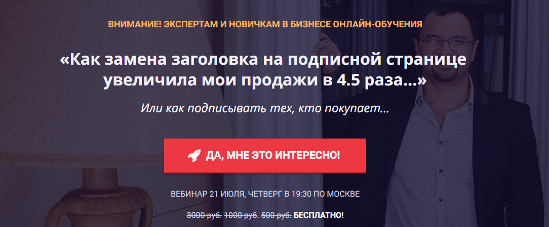 Тогда - 21 июля в 19:30 по Москве приходите на бесплатный вебинар Юрия Курилова, который расскажет про оффер на примере подписных страниц (ведь именно с подписных страниц начинается процесс взаимодействия с вашими подписчиками).
